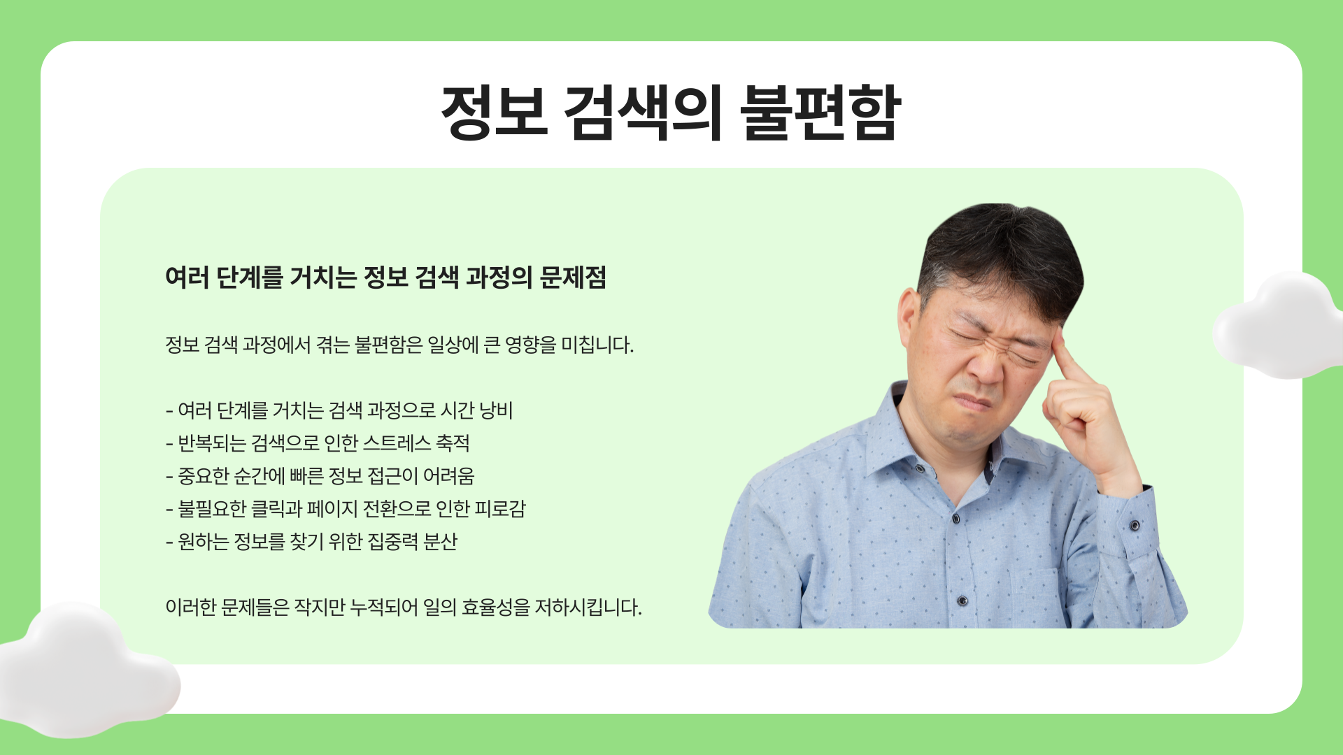 인터넷에서 원하는 정보를 찾기 어렵거나, 다양한 서비스를 한 번에 이용하지 못해 불편함을 느끼신 적 있으신가요? 여러 사이트를 오가며 시간을 낭비하는 일이 반복되면, 일상 속 작은 스트레스가 쌓이게 돼요.