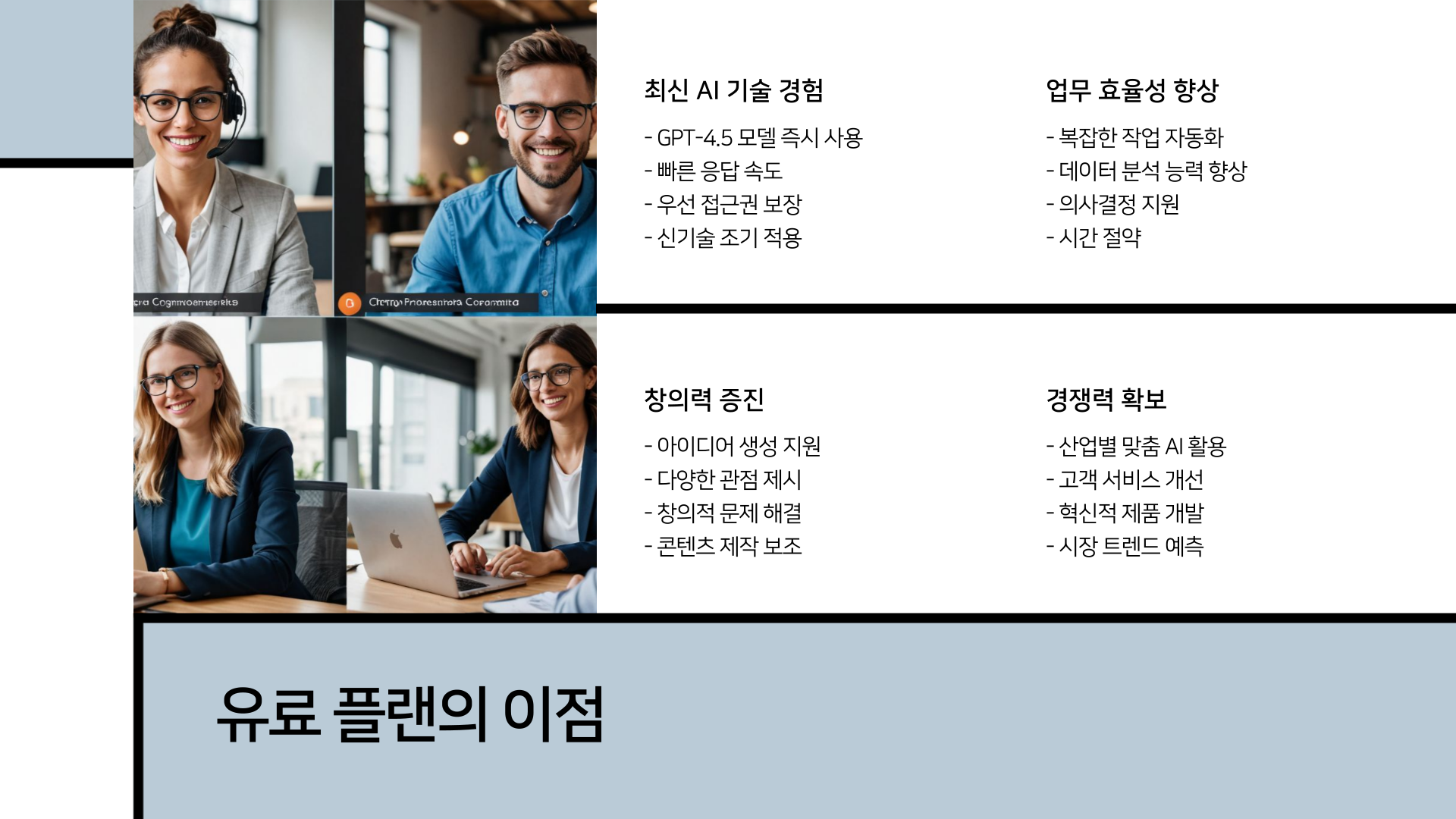 업무와 일상에서 AI의 혁신적 활용이 가능합니다.
