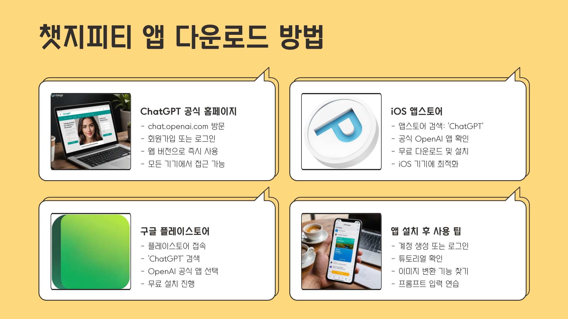 5분이면 충분해요! 아래 공식 홈페이지나 앱스토어에서 챗지피티를 설치하고, 지금 바로 사진 변환을 시작해보세요. 내 손으로 직접 만드는 특별한 디지털 경험, 오늘 바로 느껴보실 수 있습니다.