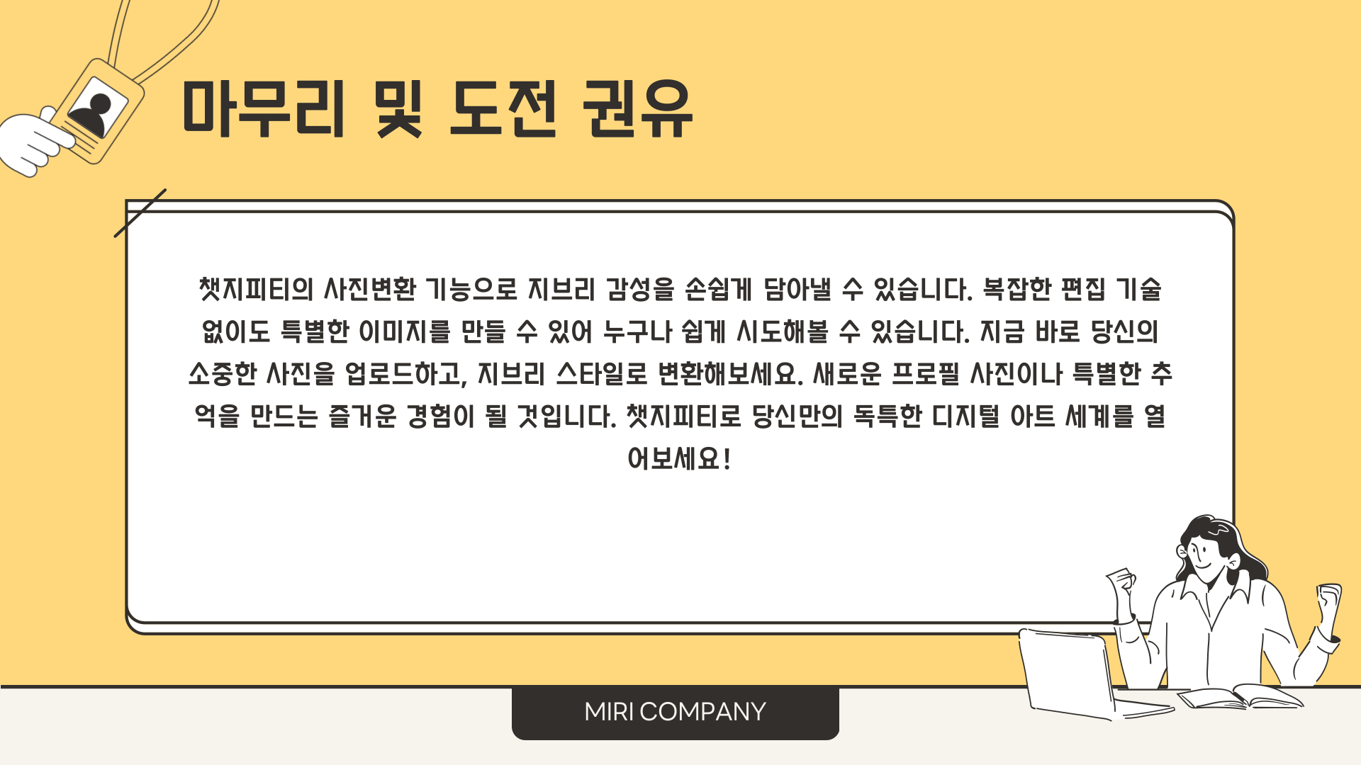 지금 바로 '챗지피티 지브리 무료 변환' 버튼을 접속해 보세요.