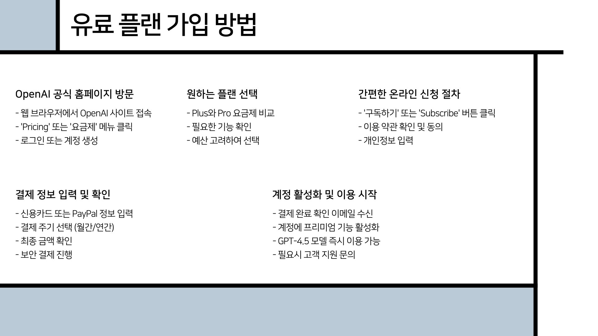 간편 가입으로 바로 시작하세요! 아래 단계만 따라하면 누구나 쉽고 빠르게 챗GPT의 모든 기능을 이용할 수 있습니다.