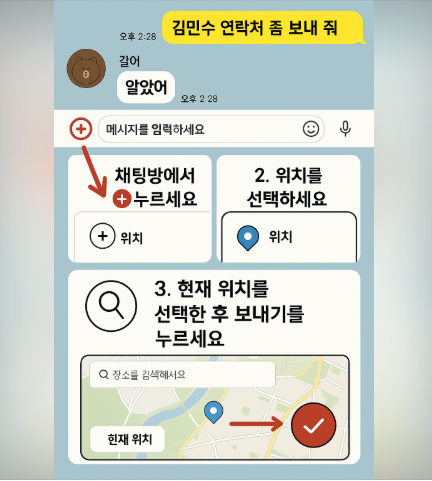 | 위치 정보 | 현재 위치 또는 특정 장소 공유 | 약속 장소 안내, 길 찾기 도움 |